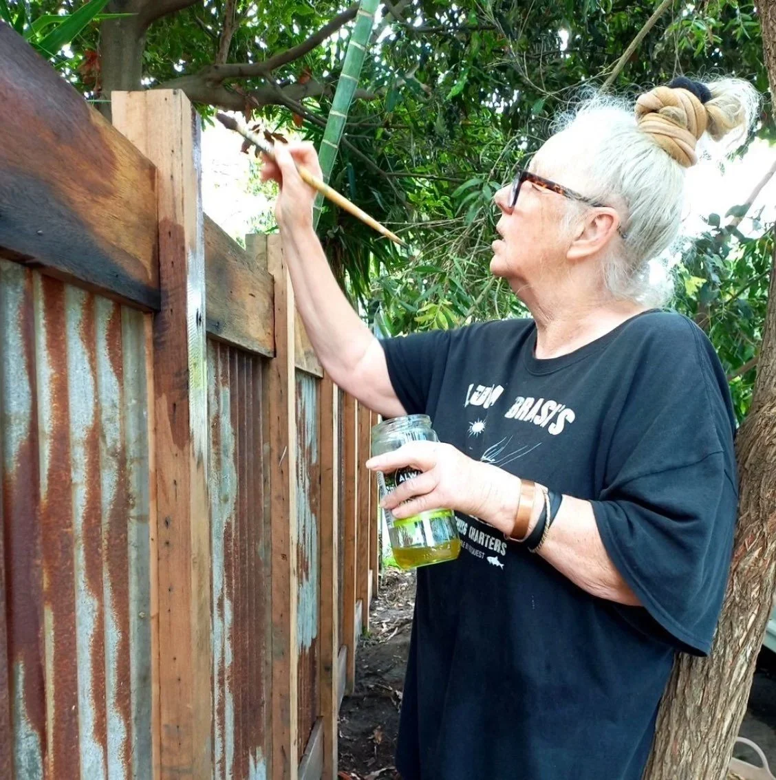 Ashley then finished the house again using all recycled materials. This was an un-planned process fitting out the interior using the backs of bookshelves as wall lining, antique wardrobes and dressers in the kitchen, bedheads as dividers, timber venetian blinds as a bathtub and more. All this sourced from the side of the road, Gumtree, Marketplace or items donated to The Bower. When you see things on the side of the road think about what the materials look like when pulled apart? What else can they be used for? The video below was presented by Ashley Menegon at The festival of Repair 2023 & 2024 at Redfern’s 107 Projects explaining this intuitive fit out process.